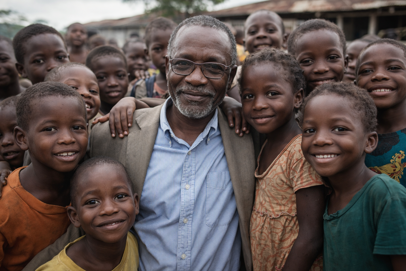Even as war raged around him, Professor Korkoya continued to hold classes under mango trees for children who had nowhere else to go.